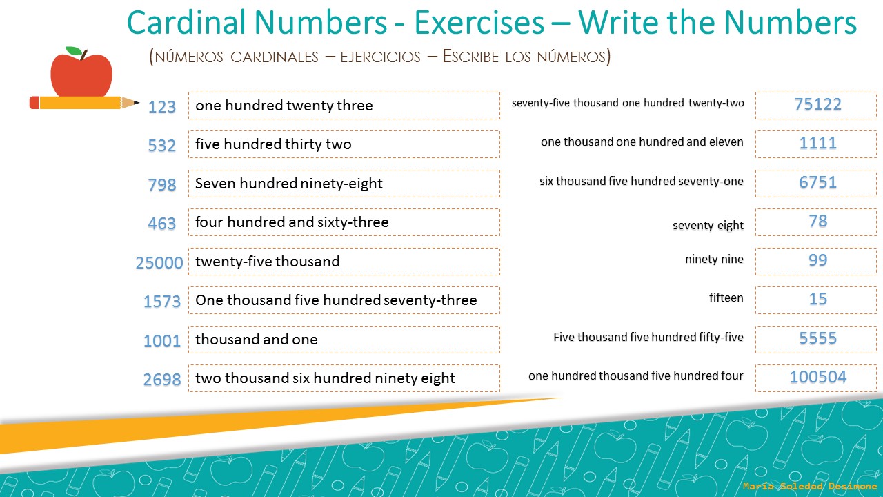 INGLÉS. CARDINAL NUMBERS. (NÚMEROS CARDINALES) EXERCISES (EJERCICIOS)